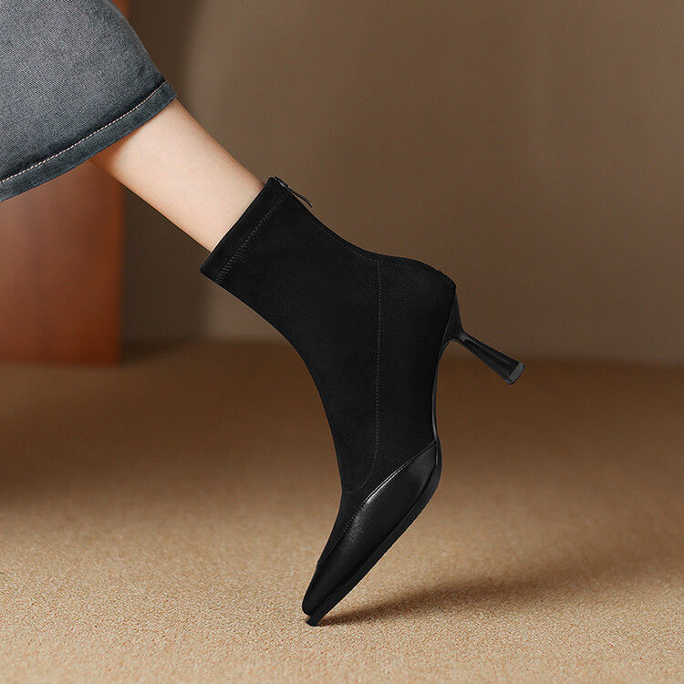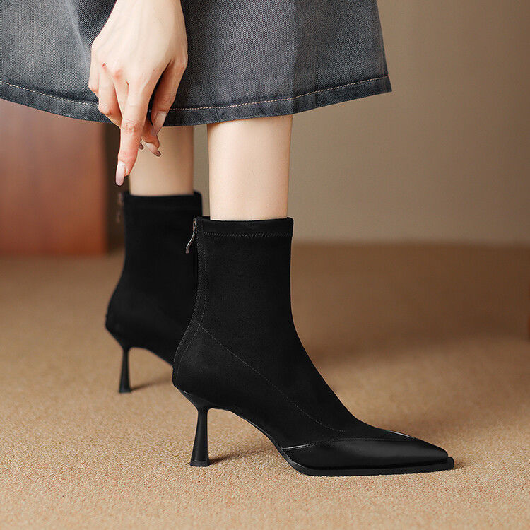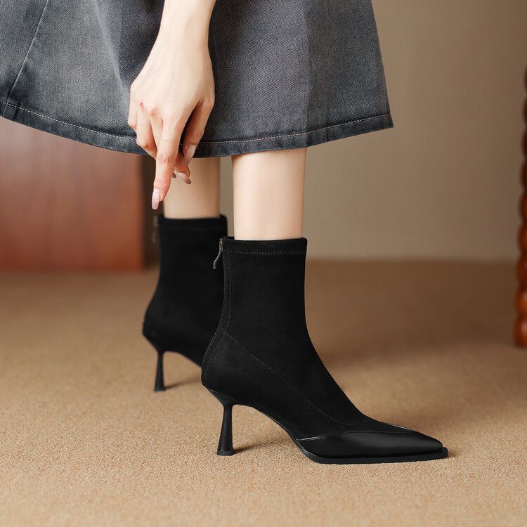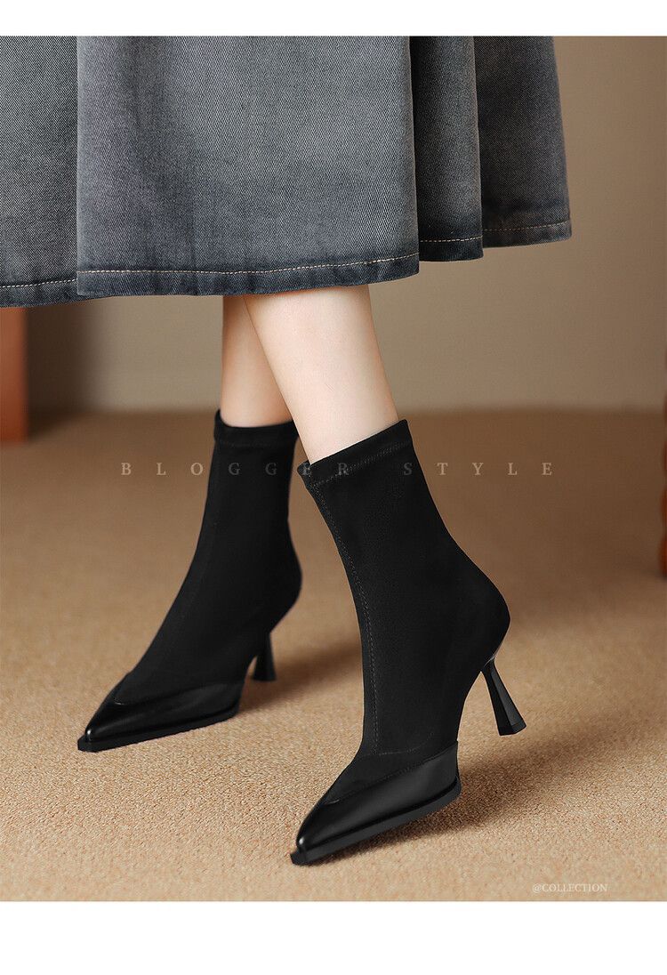 Elastic Pointed Mid-heel Ankle Boots For Women