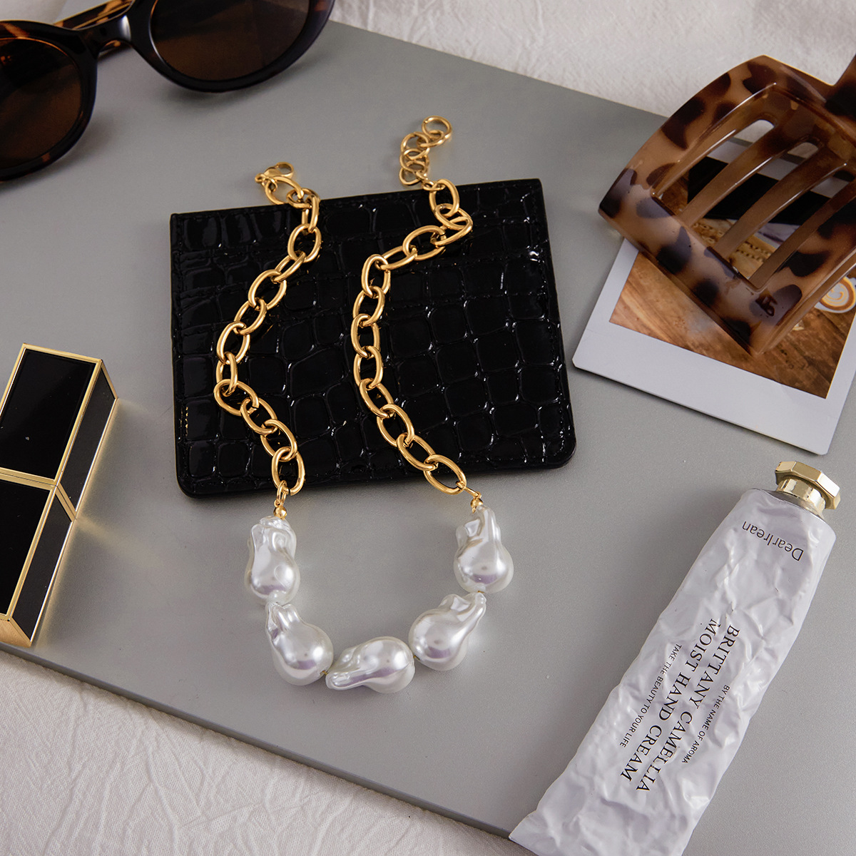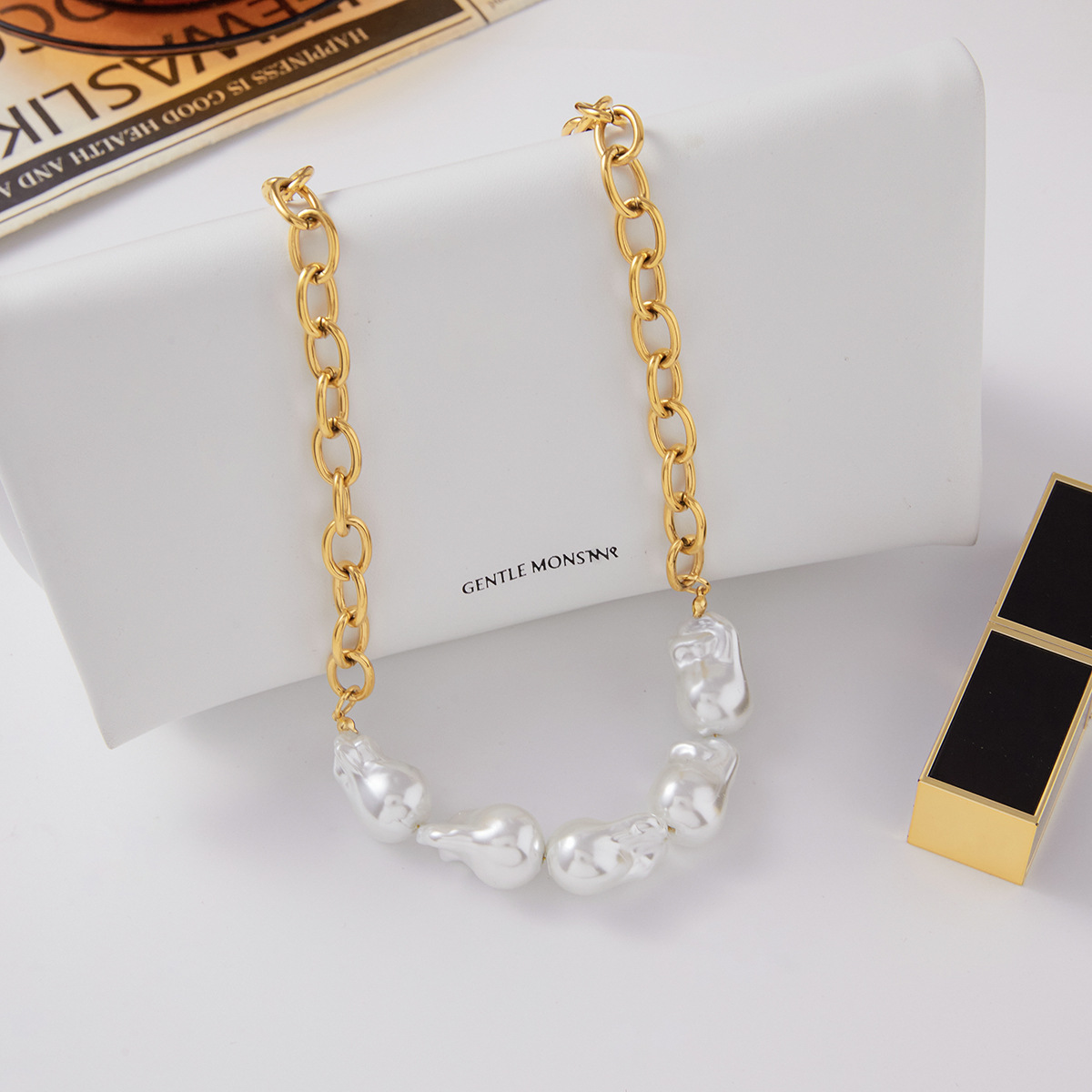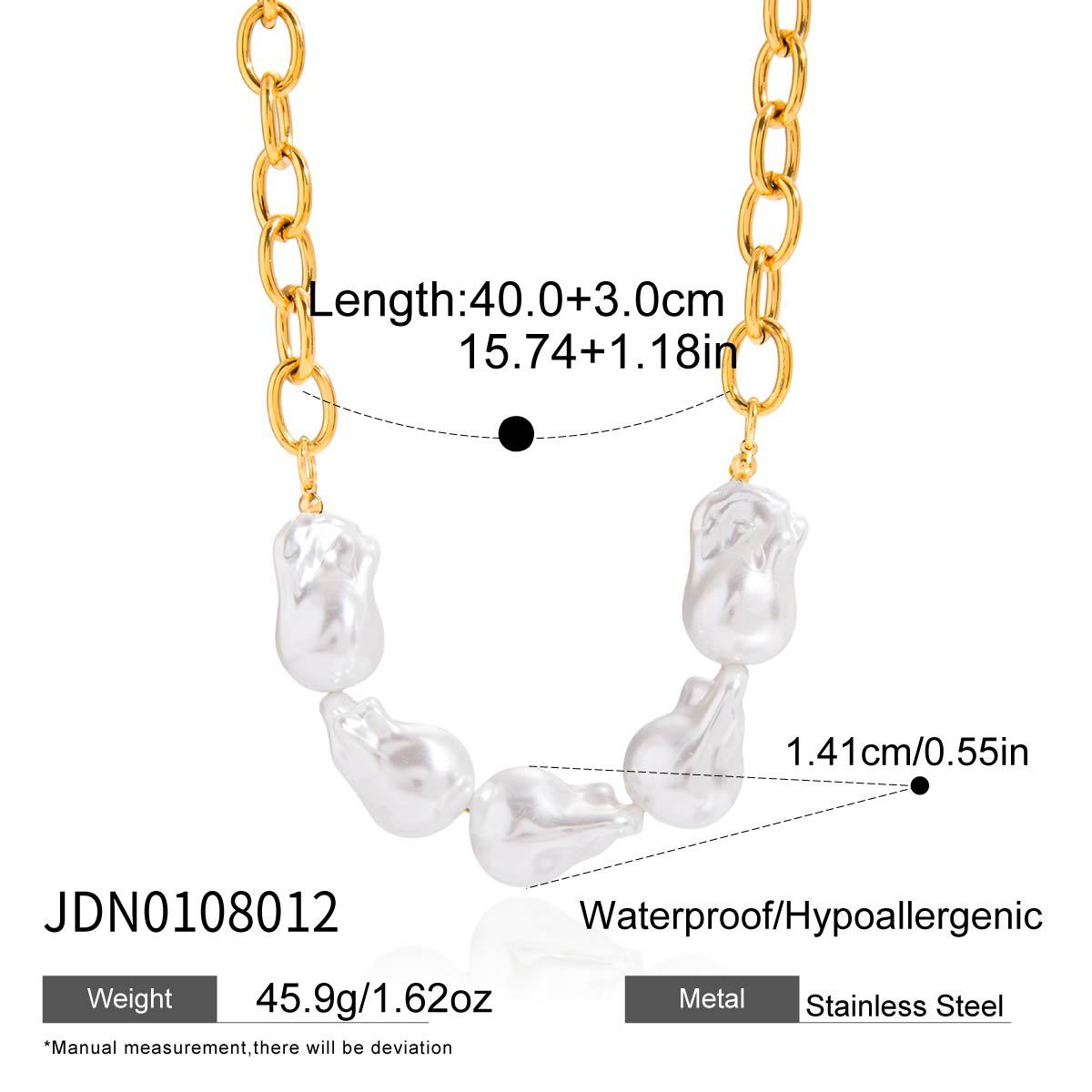 Elegant 18K Gold Stainless Steel Baroque Pearl Necklace