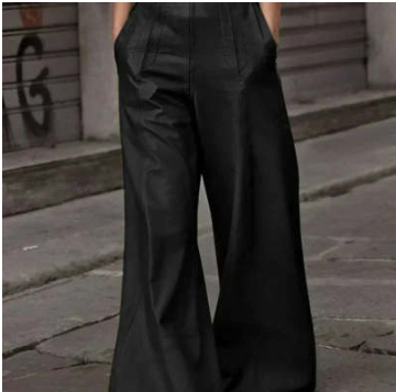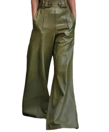 High-waisted Loose-fitting PU Leather Flared Pants With Pockets