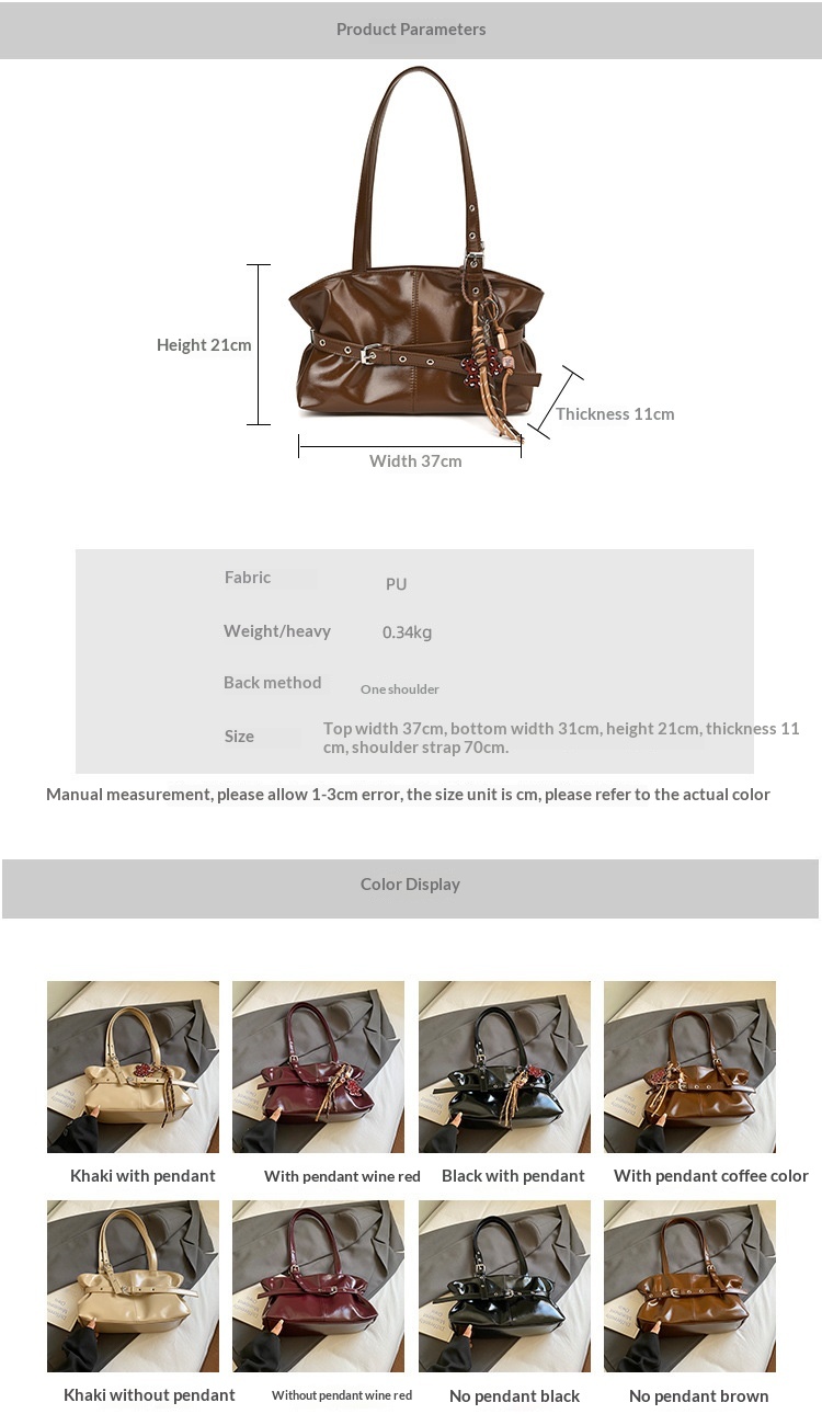 Colors: Black, coffee, wine red, khaki, black with pendant, coffee with pendant, wine red with pendant, khaki with pendant