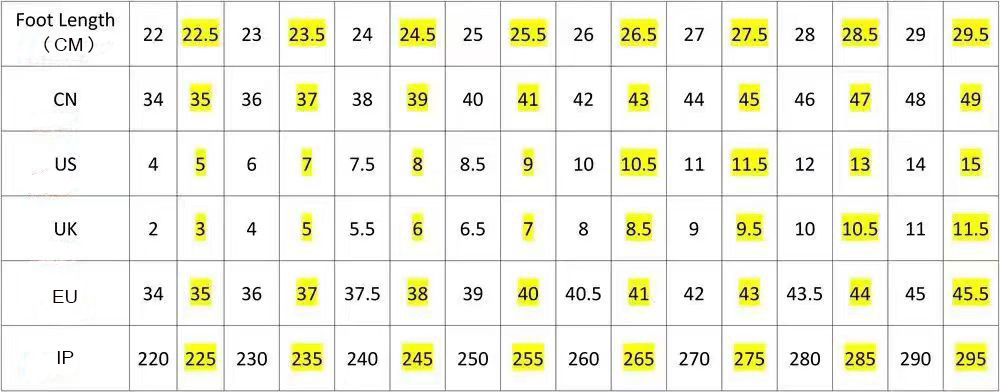 Sizes: 34, 35, 36, 37, 38, 39, 40, 41—no returns or exchanges; 42—no returns or exchanges; 43—no returns or exchanges; 44, 45, 46