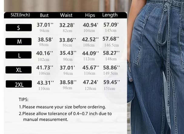 Style: Jumpsuit with wide legs, featuring a fitted waist + loose pant style, which flatters the figure;